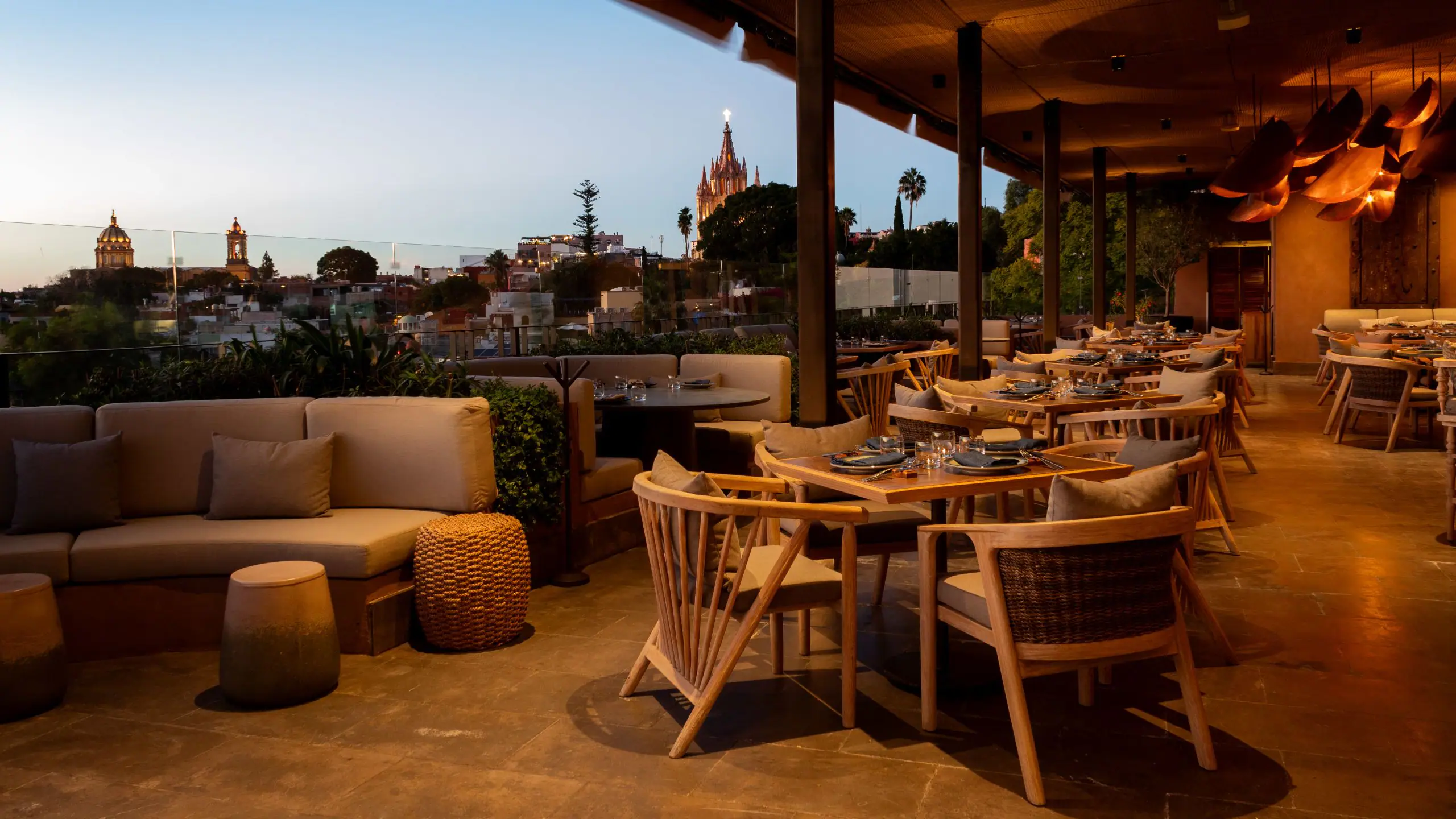 Parte del encanto gastronómico de San Miguel está en comer mirando las cúpulas, terrazas y atardeceres.